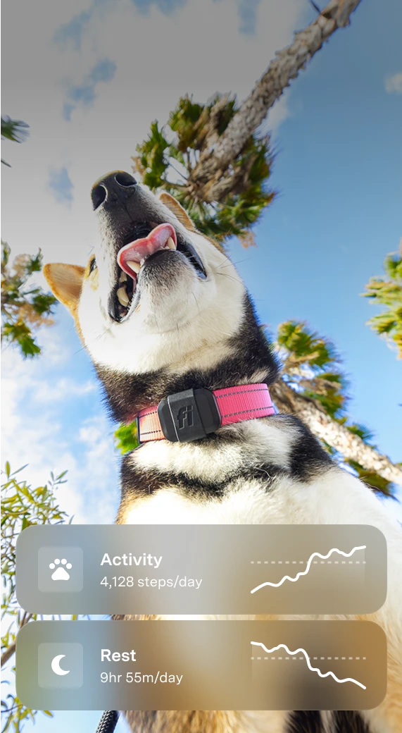 Fi Mini attaches to any collar, supercharging their one-of-a-kind look with smarter tracking.
